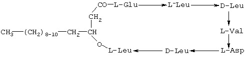 Это вещество, согласно описанию Kakinuma et al. [4, 5], представляет собой смесь циклических гексапептидов, замкнутых в кольцо через -гидрокси жирную кислоту с углеродной цепью из 13-15 атомов: