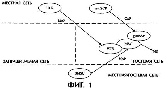 На фиг.1 показана схема архитектуры сети CAMEL phase4.