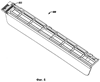 Как будет понятно, можно также использовать другие способы принудительного зацепления Т-образного устройства 500, расположенной во всю ширину дорожки 800 и/или левого концевого компонента с передним рельсом. Например, шлицы (мелкие зубчики) на переднем рельсе будут цепляться за донную часть компонентов дорожки толкателя. Может быть использовано устройство для установки нажатием, в котором язычок компонента дорожки толкателя защелкивается в передней части рельса. Передний рельс может иметь резину в канавке, в которую будет входить снабженный зубчиками язычок дорожки толкателя.