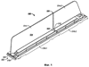 Фиг.1 представляет объединенное Т-образное устройство 500 согласно примеру реализации изобретения. Т-образная форма касается вида устройства в направлении стрелки 502 на фиг.5. Т-образное устройство 500 в действительности будет выглядеть как перевернутая верхом вниз (со смещением центра) буква Т, но для краткости оно названо Т-образное устройство. Т-образное устройство также может быть названо устройством опорной поверхности и разделителя. Т-образное устройство по существу объединяет в одно устройство первую дорожку, разделитель и вторую дорожку. Согласно показанному примеру реализации изобретения участок разделителя 504, первый участок 518 опорной поверхности и второй участок опорной поверхности 520 могут быть изготовлены как единый выполненный за одно целое объединенный компонент.