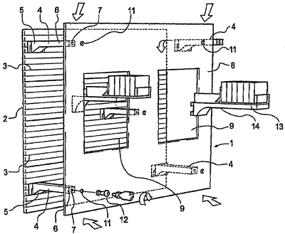 При использовании устройства магазин для демонстрации товара (13) виден через демонстрационные окна (9) и (10) щита (8) или же он выступает наружу через окна (9) и (10). Щит (8) может служить носителем объявлений, рекламных или других материалов.