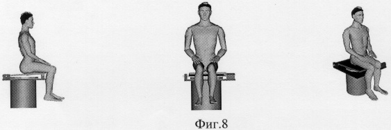 1. Способ исследования биомеханических свойств позвоночника, включающий тестовое механическое воздействие с возбуждением механических колебаний в позвоночнике и регистрацию механических откликов со стороны костной ткани при помощи сейсмодатчиков, расположенных на коже обследуемого в проекции остистых отростков позвонков и костях черепа, отличающийся тем, что возбуждение механических колебаний осуществляют путем мгновенного устранения опоры в сбрасывающем механизме, предназначенном для неподвижно сидящего на нем обследуемого, а регистрацию рефлекторных параметров проводят в фазы растяжения позвоночного столба, квазистатического воздействия на него и сжатия позвоночного столба как под действием собственной массы обследуемого, так и при размещении на нем дополнительных грузов, после чего зарегистрированные параметры сравнивают между собой и эталонными, по результатам сравнения определяют морфологические и функциональные свойства позвоночника.