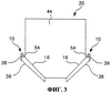 На фиг.3 показан вид спереди впитывающего элемента 20 одежды с парой изогнутых манжет 10 для ноги, соединенных с подложкой 40, в данном случае с наружным покрытием 44. Каждая из изогнутых манжет 10 для ноги может быть соединена с подложкой 40 либо в ходе выполнения последовательных операций, либо одновременно.