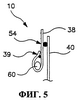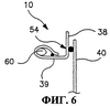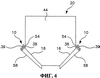 Подложка 40, показанная на фиг.2, обычно представляет собой подкладку 42 или наружное покрытие 44 впитывающего элемента 20 одежды (фиг.1). Как показано на фиг.2, подложка 40 предпочтительно имеет изогнутый вырез вдоль, по меньшей мере, одного края 46. Термин “изогнутый вырез” относится к любому вырезу, имеющему изогнутый край, который может включать один материал, вырезанный так, что формируется вырез, или несколько материалов, которые соединены вместе для образования формы выреза. Соединенная область 54, в которой манжета 10 для ноги соединена с подложкой, приблизительно параллельна форме изогнутого выреза области для ноги. Параллельная линия соединенной области 54 проходит в направлении центра изделия, обеспечивая соединенную область 54 с большим радиусом по сравнению с отверстием для ноги. Больший радиус приводит к тому, что манжета 10 для ноги собирается к центру отверстия для ноги при использовании в качестве трусов, при этом позволяя усадку манжеты 10 для ноги, так что она в изделии принимает наиболее свободное состояние. Перед тем как манжета 10 для ноги будет соединена с подложкой 40, изогнутый вырез выравнивают с соединенной областью 54 на манжете 10 для ноги, как показано на фиг.2. В результате первый участок 38 манжеты 10 для ноги соединен с подложкой 40 вдоль края, смежного изогнутому вырезу. Подложка 40 предпочтительно выполнена растягиваемой, при этом обеспечивая большую гибкость и позволяя накладывать манжету 10 для ноги при слабом ее натяжении.