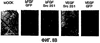 Кратко говоря, стереотактически вводили физиологический раствор или VEGF (200 нг в 2 мкл) в левую, или правую фронтальную долю на 92 мм влево/вправо от средней линии, на 0,5 мм к носу от брегмы и на 3 мм вглубь от твердой мозговой оболочки, соответственно. Через 30 мин после инъекции животным вводили внутривенно раствор синего красителя Эвана, как описано выше. Еще через 30 мин мышей перфузировали и удаляли головной мозг. Наблюдали флуоресценцию синего красителя Эвана, применяя конфокальную лазерную микроскопию свежих нефиксированных криосрезов головного мозга.