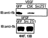 Для оценки эффекта факторов роста на активность Src в модуляции ангиогенеза проводили следующие исследования. Экстракты ткани САМ 10-дневных цыплят, которые подвергали действию bFGF или VEGF (2 мкг/мл) в течение 2 часов, лизировали. Эндогенный Src подвергали иммунопреципитации из эквивалентных количеств общего белка, подвергали иммунному комплексному исследованию киназы in vitro, используя слитый белок FAK-GST в качестве субстрата, проводили электрофорез и переносили на нитроцеллюлозу.