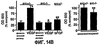 Свойства по проницаемости сосудов VEGF определяли в коже мышей src+/- (ФИГ.14А, левая панель) или src-/- (ФИГ.14А, правая панель) при внутрикожной инъекции физиологического раствора или VEGF (400 нг) мышам, которым ввели внутривенно синий краситель Эвана. Через 15 мин участки кожи фотографировали (1 мм шкала). Звездочки указывают места инъекций. Области, окружающие места инъекций VEGF, bFGF или физиологического раствора, иссекали и количественно определяли VP посредством элюирования синего красителя Эвана в формамиде при 58°С в течение 24 час и измерения поглощения при 500 нм (ФИГ.14В, левая графа). Известную способность медиатора воспаления (аллилизотиоцианата) индуцировать связанную с воспалением VP исследовали на мышах src+/- или src-/- (ФИГ.14В, справа).