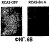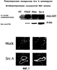Аликвоты описанных выше лизатов ткани также оценивали на фосфорилирование эндогенного ERK посредством иммуноблоттинга с анти-фосфо-ЕРК-антителом, как показано на ФИГ.7В. Для такой оценки 10-дневные САМ инфицировали либо фиктивным RCAS, либо RCAS, который экспрессирует Src А. Через два дня САМ иссекали, криоконсервировали в ОСТ и делали срезы по 4 мкм. Срезы иммуноокрашивали антителом против фосфорилированного ERK (New England Biolabs), промывали и детектировали, используя антикроличье FITS-конъюгированное вторичное антитело козы. Флуоресцентные изображения получали при помощи охлажденной CCD-камеры (Princeton Inst.). Микрофотографии показывают усиление иммунофлуоресценции в препаратах, обработанных Src А, по сравнению с mock-контролями.