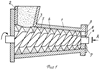 Недостатком известного устройства являются повышенные энергозатраты, вызванные трением ножей о неподвижную матрицу и о вращающуюся, с иной скоростью, чем нож, поверхность вращения. Выход из матрицы очередных гранул осуществляется их выталкиванием последующими гранулами, что не исключает их слипания. Неэкономично и конструктивно сложно использование двух приводов (вращения поверхности вращения и вращения ножа) для выполнения одной задачи – образования гранул. Кроме того, как видно из чертежа, уплотнение материала, необходимое для гранулирования, не может осуществиться, поскольку при постоянном шаге навивки и возрастающей емкости межпазухового пространства материал не уплотняется, а разрыхляется.