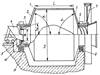 Кольцевой отбойник 10 установлен на вертикальном кольцевом ребре 9 цапфы. Спиральная поверхность 11 размещена на внутренней броневой поверхности конусной части 3 цапфы.