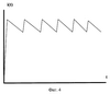 Работу модулей 15 можно пояснить следующим образом. Схема обратной связи 5 анализирует уровни напряжений, пропорциональные токам на резисторах Ri (i=1,2…N) в первичной и Rji (i=1,2…N) вторичной обмотках трансформаторов Трi (i=1,2…N), и напряжение VS, и управляет распределителем импульсов 4 таким образом, что, во-первых, величина среднего значения суммы токов во вторичных обмотках трансформаторов Тр1-TpN (устанавливается потенциометром 3) поддерживается постоянной и, во-вторых, суммарный ток во вторичных обмотках не обращается в ноль (т.е. непрерывен, как показано на фиг.4) независимо от падения напряжения на нагрузках по выходам 1-N в широком диапазоне изменения этих напряжений. Каждый из М модулей 15 генератора используется для создания плазмы между электродами, подсоединенными к выходам 1-N секции и к общей шине (аноды), причем выходы 1-N секции могут использоваться либо раздельно для создания разряда из N плазменных ячеек (фиг.2), при этом ток каждой секции является прерывистым (фиг.5), но задается такая частота прерываний F, что за время 1/F обтекающий секцию воздушный поток смещается на расстояние, меньшее размера ячейки вдоль потока, либо соединяются друг с другом для создания одной плазменной панели (Фиг.3). Каждый из М модулей 15 может работать независимо от других модулей, позволяя, таким образом, создавать M·N плазменных ячеек или М плазменных панелей.
