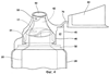 (b) выступ (30), содержащий основание (32) выступа и наконечник (34) выступа, причем основание выступа прикреплено к корпусу, наконечник выступа имеет торцевую поверхность (36) с по меньшей мере двумя отверстиями (16, 17), причем по меньшей мере одно отверстие находится в соединении с каждой из камер корпуса, а другой конец (22b) каждого разделителя корпуса расположен внутри выступа и герметизирован на торцевой поверхности наконечника выступа,