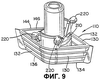 Возможно выливное устройство 110 отформовано так, чтобы обеспечить два единых нижних фланца 210 и четыре единых верхних фланца 220 на его наружном конце 144. Такие фланцы 210, 220, если они имеются, предназначены для взаимодействия с разнесенными направляющими (не показаны) машины для автоматической обработки (не показана), когда выливное устройство 110 обрабатывают такой машиной. Такие фланцы 210, 220, если они имеются, выполнены так, что выливное устройство 110, включающее корпус 130, трубку 148 и фланцы 210, 220, может быть отформовано в простой форме, состоящей из двух частей, которую можно открыть путем простых одноосевых прямых перемещений частей формы друг от друга, как описано выше. Понятно, что выливное устройство 110 будет работать по назначению, даже если такие фланцы 210, 220 отсутствуют.
