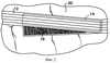 13. Регулируемый фиксатор вкладыша по п.11, дополнительно содержащий накладную пластинку, прикрепленную к указанной полоске материала либо на указанной первой стороне, либо на указанной второй стороне, противоположной, по меньшей мере, одному из указанных участков с “крючками” и “петлями”.