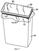 К фиксатору 10 напротив полосок 14, 16 могут быть приклеены или пришиты язычки или короткие полоски для закрепления орнаментальных деталей или ярлыков с целью размещения какой-либо информации или маскировки наружной стороны полосок-липучек 14, 16. Как правило, верхние части вкладышей 20 завязывают узлом, с тем чтобы они были лучше пригнаны к контейнеру, в который их помещают. Эта операция не только неэффективна в смысле предотвращения соскальзывания вкладыша в контейнер, но и оставляет впечатление неопрятности, особенно при использовании контейнеров в местах большого скопления людей, в офисах, в номерах гостиниц и мотелей. После прикрепления фиксатора 10 вкладыша к контейнеру 18 на нем можно быстро и с легкостью закрепить, например, логотип компании, бант, табличку с кодом, штриховой код, табличку с именем и т.п. Хотя вкладыши 20 используются, главным образом, в качестве емкости для отходов, их в последнее время стали также широко применять для разделения разных видов содержимого контейнера, особенно в тех случаях, когда пользователь не желает перед повторным использованием контейнера вычищать остатки его предыдущего содержимого.