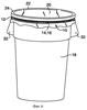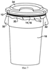 Фиг.7 – изображение в перспективе фиксатора вкладыша по фиг.1, используемого на круглом контейнере с ручками возле кромки и с крышкой.
