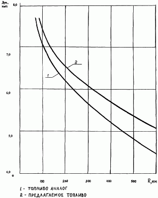 Градиент падения скорости ударной волны (замедление темпов падения скорости ударной волны) лучше, чем у топлива – аналога.