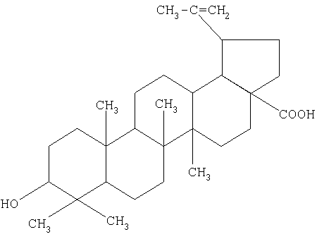 -гидрокси-20(29)-лупаен-28-овая)-природное биологически активное вещество, подавляющее рост раковых клеток, а также обладающее анти-ВИЧ активностью.