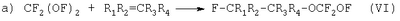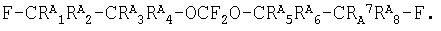 Настоящее изобретение относится к простым фторвиниловым эфирам, способу их получения и получаемым из них полимерам. Хорошо известно, что простые перфторалкилвиниловые эфиры используют в качестве мономеров для сополимеризации олефинов, в частности, тетрафторэтилен, винилиденфторид, хлортрифторэтилен (CTFE – ХТФЭ), гексафторпропен. Введение небольших количеств простых перфторалкилвиниловых эфиров в пластомерные полимеры приводит к повышенной технологичности полимера и улучшенным термомеханическим свойствам. Введение больших количеств простых перфторвиниловых эфиров в образующие поперечные связи фторполимеры придает фторированным каучукам эластичные свойства при низкой температуре. В области фторированных полимерных материалов возникла необходимость получения эластомеров, обладающих улучшенными свойствами при низких температурах. Такие свойства могут обычно определяться температурой стеклования – Tg. Пониженная Tg позволяет получить полимеры, которые могли бы использоваться при низких температурах, и поэтому дает возможность иметь в распоряжении эластомеры с более широкой областью применения. Для получения сочетания вышеуказанных свойств простые фторвиниловые эфиры должны иметь высокую унитарную способность к модификации свойств основной цепи, а также обладать высокой реакционной способностью, для того чтобы их можно было использовать в качестве сомономеров в эластомерных фторполимерах. Желательно было иметь в распоряжении простые виниловые эфиры, полученные несложным способом с ограниченным числом стадий. Особенно желательно было иметь в распоряжении непрерывный способ получения указанных простых виниловых эфиров. Для решения вышеуказанной технической проблемы в известном уровне техники были предложены простые фторвиниловые эфиры с различными структурными свойствами. Однако в предшествующем уровне техники, описанном ниже, существуют различные нерешенные проблемы в синтезе простых перфторвиниловых эфиров и в получении соответствующих полимеров, обладающих комбинацией вышеуказанных свойств. Патент США №3132123 описывает получение простых перфторалкилвиниловых эфиров, соответствующих гомополимеров и сополимеров с (TFE). Гомополимеры получают в крайне жестких экспериментальных условиях, используя давление полимеризации от 4000 до 18000 атм. Гомополимер простого перфторметилвинилового эфира (ПМВЭ – PMVE) является эластомером: Tg не приводится. Общей формулой описанных простых виниловых эфиров является следующая: CF2=CFOR°F, где R°F означает перфторалкильный радикал, предпочтительно с 1-5 атомами углерода. Способ получения этих простых виниловых эфиров описан в патенте США №3291843, где получают соль исходного ацилфторида и осуществляют пиролиз с карбонатами в присутствии растворителей. При этом способе получают нежелательные гидрированыые побочные продукты. Патент США 3450684 касается простых виниловых эфиров, имеющих формулу CF2=CFO(CF2CFX°O)n’CF2CF2X°, где Х°=F, Cl, CF3, Н и n’ может изменяться в пределах от 1 до 20. Сообщается также о гомополимерах, полученных УФ-полимеризацией. Для приведенных в качестве примеров сополимеров отсутствуют характеристики их механических и эластомерных свойств при низких температурах. В патенте США 3635926, касающемся эмульсионной сополимеризации простых перфторвиниловых эфиров с Т
