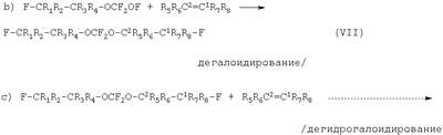 16. Фторэластомеры по любому из пп.14 и 15, вулканизуемые по пероксидному способу, необязательно в присутствии небольших количеств вышеуказанного бис-олефина, указанные фторэластомеры предпочтительно содержат реакционно-способные участки, т.е. иод и/или бром в цепи, предпочтительно иод, и/или используют иодированные и/или бромированные агенты передачи цепи. 17. Фторэластомеры по любому из пп.13-15, вулканизуемые по ионному способу, имеющие следующий состав (в молях): когда фторэластомер используют для получения уплотнительных колец: