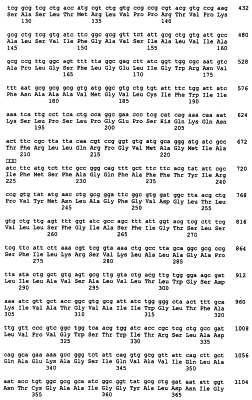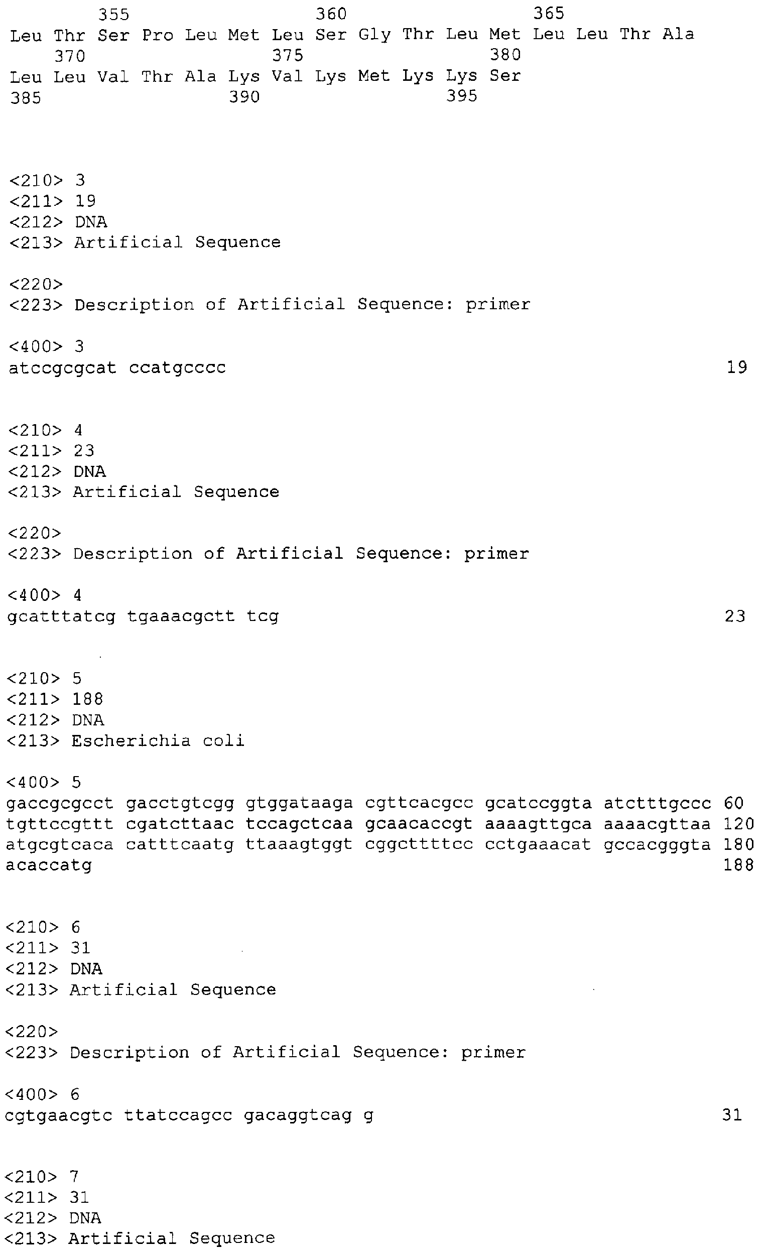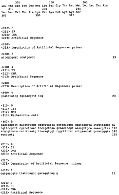 На Фиг.3 показана последовательность хромосомной ДНК из штамма Е.coli К-12, располагающаяся на хромосоме указанного штамма перед геном yicM (также представлена в списке последовательностей как последовательность под номером 5). Альтернативный старт-кодон обозначен жирным шрифтом. Предполагаемый сайт связывания рибосомы подчеркнут.