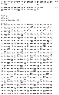 Точка начала трансляции гена yic М не была известна, а предполагаемый аминокислотный состав соответствующего белка изменялся в разных базах данных. В соответствии с базой данных Genbank, белок (NP_418118) состоял из 451 аминокислоты. В соответствии с базой SWISS-PROT белок (Р31438) состоял из 412 аминокислот. В соответсвии с базой EcoGene белок (EG 11689) состоял из 396 аминокислот. Соответствующие старт кодоны отмечены жирным шрифтом на Фиг.3.