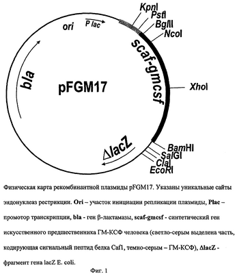 Рекомбинантная плазмидная ДНК pFGM17, кодирующая полипептид со структурой ГМ-КСФ человека, характеризуется следующими признаками: