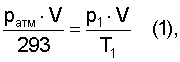 При температуре Т=293K давление р=ратм. При температуре T1 давление p=p1. Тогда