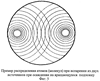 Совсем иная картина наблюдается, если подложка вращается (фиг.4, 5). В этом случае периферийные зоны подложки, вращаясь, находятся под паровым потоком выпариваемого компонента А, паровым потоком компонентов (А+В) и (В+А) и дальше – под паровым потоком компонента В. Происходит наложение паровых потоков компонентов А А+В В+А В друг на друга. Естественно, что толщина чередующихся микрослоев будет зависеть от технологических параметров получения материала: скорости выпаривания соответствующих материалов, скорости вращения подложки. Увеличение или уменьшение скорости вращения подложки обязательно приводит, соответственно, к увеличению или уменьшению толщины чередующихся слоев из компонентов А и В.
