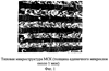 Наиболее приемлемой является обработка поверхности, как показано на фиг.6. В этом случае, волнистость слоев из компонентов А и В (соответственно светлые и темные линии на фиг.6), практически не сказывается на механических характеристиках микрослоистых материалов. Увеличение уровня волнистости, изменение его формы от куполоподобной до ребристой (фиг.7) может привести к возможному нарушению слоистости (прерывности слоев и появлению концентраторов напряжений в местах впадин, которые, в конце концов, приведет к снижению механических характеристик материала.