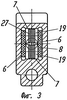 Исключение отжима роликов, т.е. несанкционированное открывание устройства, обеспечивается, как уже упоминалось ранее, выступами 16, которые выполнены в отверстии кольца 15 и которые перекрывают радиальный зазор между тросом 1 и отверстием в кольце.