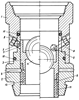 – радиальный канал под шаровой затвор в корпусе выполнен наклонным от наружной поверхности корпуса в сторону его нижней части;