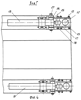 На боковинах 21 балки 14 с обеих сторон имеются отверстия 22 с осями 23 для крепления корпусов гидроцилиндров подъема 12. Опорные поверхности 24 балок 14 во время движения опираются на ролики 25, закрепленные в кронштейнах 26 осями 27.