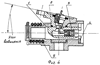 Рычаг 4 служит для фиксации ствола установки во взведенном положении и его спуска при подаче тока через обмотку электромагнита. При этом якорь 1 электромагнита через тягу 2 и рычаг 3 поворачивает упор 5, который воздействует на рычаг 4, освобождая его от зацепления с зубчатым сектором оси поворотного устройства. Под действием пружины ствол вместе с осью поворачивается в спущенное (походное) положение. В процессе этого поворота зубчатый сектор оси через толкатель 6 воздействует на микропереключатель 7 и в вычислительное устройство поступает информация об угловом положении ствола. В требуемый момент на электробоек ствола подается напряжение и происходит отстрел гранаты.