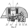 Поворотное устройство пусковой установки, конструкция которого показана на фиг.4, состоит из основания 1, поворотной платформы 2, к которой крепится казенная часть ствола, оси 3, скрепленной с платформой с помощью штифтов, и пружины 4, выполняющей функции импульсного привода. Наклон установочной плоскости поворотной платформы 2 относительно оси 3 обеспечивает отстрел гранат с заданным углом возвышения во всем секторе поворота.