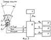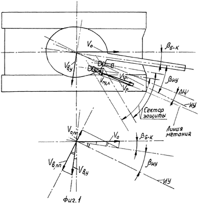 При определении углового положения источника угрозы (ИУ) учитываются (фиг.1) положения этого источника относительно оси башни (угол ИУ), а также самой башни относительно продольной оси объекта (угол Б-К). С использованием этих углов производится также и оценка составляющих скорости ветра Vв и скорости движения объекта Vo, приведенных к направлению, перпендикулярному линии угрозы (Vв,пп, Vо,пп). Так, при наличии информации о поперечной составляющей скорости ветра Vв,y, оцениваемой на танке штатным датчиком, величина Vв,пп определится зависимостью