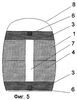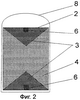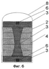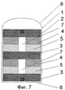 Секции заряда взрывчатого вещества приводятся в действие от одного или нескольких инициирующих устройств 6, таких как электродетонаторы или взрыватели, и могут содержать отверстия для установки средств инициирования. Секции энергетических блоков могут быть выполнены с осевым каналом 7 (фиг.4, 5, 7), предназначенным для передачи детонации между секциями заряда взрывчатого вещества. Корпус устройства и оболочки секций могут быть выполнены из стали, алюминия, пластмасс, титана и других материалов, способных реагировать в высокотемпературных средах, создаваемых действием данного устройства. Дополнительным элементом корпуса боеприпаса является баллистический колпак 8.
