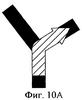 [00100] Подобно различным видам перекрестков (например, развилка или пересечение дорог), показанным на фиг.10А-10D, в действительности могут существовать перекрестки дорог с разными углами пересечения. Кроме того, можно значительно улучшить наглядность путем одновременного отображения направляющей стрелки поворота на многоугольном перекрестке с высокой степенью визуализации и упрощенной формы реального перекрестка.