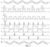 Питание источников светового излучения осуществляется от электронного блока, структурная схема которого представлена на фиг.4. В состав электронного блока входят: устройство выделения сигнала синхронизации (УВСС) поз.1, синхронизируемый задающий генератор (СЗГ) поз.2, фазовый регулятор (ФР) поз.3, счетный триггер (СТ) поз.4, формирователь стробирующего импульса (ФСИ) поз.5, элементы «И» поз.6, поз.7, выходные ключи (ВК1, ВК2) поз.8, поз.9, которые управляют светоизлучающими диодами поз.10 и поз.11 осветительной системы. Буквами А-И обозначены контрольные точки.