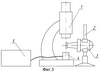 Способ измерения амплитуды колебаний излучающей поверхности ультразвуковой колебательной системы, заключающийся в том, что колебательную систему располагают так, что ее акустическая ось перпендикулярна оптической оси источника светового излучения, совмещают с ней неподвижно установленную излучающую поверхность колебательной системы, освещают колеблющуюся поверхность и по ширине зоны частичной тени визуально измеряют амплитуду колебаний через микроскоп с окулярной шкалой или сеткой, отличающийся тем, что освещение излучающей поверхности осуществляют от источников, формирующих в цилиндрический пучок импульсное световое излучение различных длин волн (цветов), причем длительность импульсов устанавливают равной тысячной доле периода рабочих колебаний колебательной системы, а частоту следования импульсов устанавливают так, что моменты формирования импульсов светового излучения одной длины волн (цвета) совпадают с моментом максимального смещения излучающей поверхности в одном направлении, а момент формирования импульсов светового излучения другой длины волн (цвета) – с моментом максимального смещения в другом направлении, амплитуду колебаний определяют по относительному смещению изображений излучающей поверхности в моменты формирования импульсов светового излучения различных длин волн (цветов).