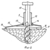 Отверстия 4 (шпуры) выполняют сверлильным инструментом 10 с использованием предлагаемого кондуктора 5, обеспечивающего перпендикулярность отверстия 4 к опорной плоскости 11 бетонной конструкции. Кондуктор 5 для сверления отверстия 4 содержит направляющую цилиндрическую втулку 12 с буртом 13, которая жестко с помощью гайки 14 закреплена в основании 15. Основание 15 выполнено в виде равностороннего треугольника с загнутыми углами для образования опорных выступов 16. Основание 15 снабжено плоской горизонтальной площадкой в центральной зоне для опоры бурта 13 направляющей втулки 12. Цилиндрическая часть направляющей втулки 12 выполнена резьбовой для жесткого крепления ее в основании 15 посредством резьбового соединения с накидной гайкой. Основание 15 может быть выполнено коническим. Углы основания могут быть выполнены под острым углом.