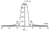 Из полученной зависимости выбирают угловой интервал в градусах по центральному максимуму между нулевыми значениями интенсивности.