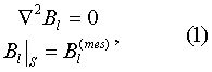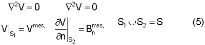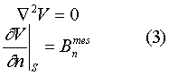 Задача (3) выглядит наиболее привлекательной, т.к. требуется измерить только одну компоненту Bn, нормальную к непрерывной границе S, а не три компоненты вектора , как в задаче (1). Это приводит к трехкратному уменьшению затрат на проведение измерений.