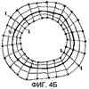 Интерполяция посредством решения уравнения Лапласа проиллюстрирована на фиг.4а и 4б. В этом альтернативном варианте компоненты магнитного поля в множестве точек непрерывной границы вычисляют, решая задачу Дирихле или Неймана для уравнения Лапласа с использованием в качестве граничных условий значений компонент магнитного поля, измеренных датчиками 1, расположенными на одной наружной вспомогательной поверхности (фиг.4а) или двух вспомогательных поверхностях (фиг.4б), охватывающих непрерывную границу S. Показано разбиение области, ограниченной вспомогательной поверхностью и непрерывной границей или двумя вспомогательными поверхностями, на конечные элементы, более детально представленные на фиг.2а и 2б.