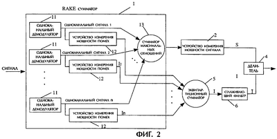 1. После прохождения через RAKE сумматор 1 RAKE приемника переданный многоканальный сигнал формируется в одноканальный сигнал.