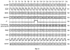 Временные диаграммы 122 и 123 (фиг.8) соответствуют сигналам на входах 60 и 61 скремблера 54; диаграмма 124 – сигналу на выходе элемента Исключающее ИЛИ 59; диаграмма 125 – сигналу на выходе элемента Исключающее ИЛИ 56; диаграмма 126 – сигналам на выходах регистра 74; диаграмма 127 – сигналу на управляющем входе P/S регистра 58 (точка 78); диаграмма 128 – состояниям генератора 55 псевдослучайной последовательности битов; диаграмма 129 – сигналу на входе усилителя 57.
