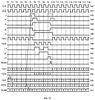 Блок 69 нечувствителен к повторно формируемым импульсам J, если они поступают на вход блока в тактах Т6-Т7, Т7-Т8, Т8-Т9 или Т9-Т10 (последний показан на диаграмме 142 штриховой линией), так как повторный положительный фронт сигнала F либо отсутствует, либо подтверждает ранее проведенную установку триггера 101 в единичное состояние, либо не воздействует на этот триггер из-за наличия импульса RESET. Если повторно формируемый импульс J поступает на вход блока 69 в такте Т10-Т11 (фиг.11, диаграмма 160) или в последующих тактах, то вставка командных битов из второго канала повторяется (диаграммы 161-175). Отметим, что в повторно формируемый импульс J в данном случае порожден битом синхронизации из второго канала (помечен точкой на диаграмме 174). При выдаче данных в линию 51 вслед за битом синхронизации передаются еще два бита (один из второго и один из первого канала) и лишь затем – четыре бита из второго канала (диаграмма 175).