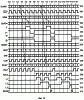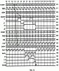 Как показано на диаграммах 126 и 127 (фиг.8), одним из кодов, вызывающих принудительную установку генератора 55 в фиксированное состояние, является код SDATA=CODE1=6216=011000102. Этот код присутствует в регистре 74 в интервале времени Т8-Т9 и, как уже отмечалось, дешифратор 75 реагирует на него подготовкой регистра 58 к приему параллельного кода LOAD1 с входов 79. Этот код в данном примере равен 0E16=011102 и соответствует состоянию S11 генератора 55 (см. табл. 116 на фиг.7, а). Таким образом, в момент Т9 цепь последовательных переходов… S16, S17, …, S23, S24 разрывается, и вместо перехода в очередное состояние S25 генератор 55 “перескакивает” в состояние S11. После этого формируется новая цепь последовательных переходов: S11, S12,…, S18, S19,… – вплоть до возникновения очередной ситуации, при которой эта цепь разрывается, а затем образуется следующая цепь с одним из начальных состояний S3, S11, S19 или S27 и т.д.