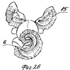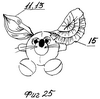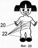 На фиг.25 представлена игрушка, одно ухо которой выполнено из деталей 7 или 9, а другое из детали 15. Благодаря наличию гибких нитей 22 ребенок сам может менять форму частей игрушки, а так же менять элементы, из которых они выполнены.
