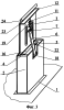 Перемещение столешницы 3 по направляющим 4 опорной секции 2 (см. фиг.3) осуществляется совместно с кареткой 20 (см. фиг.2), соединенной шарниром 21 со столешницей 3. Столешница 3 выдвигается из опорной секции 2, а затем, благодаря шарнирному соединению 21 каретки 20 и столешницы 3, последняя поворачивается из вертикальной в горизонтальную плоскость, являющуюся ее рабочим положением; при этом каретка 20 остается в направляющих 4, фиксируясь своими захватами 22 и упорами 5, и таким образом удерживает столешницу 3 от перемещения в вертикальной плоскости.
